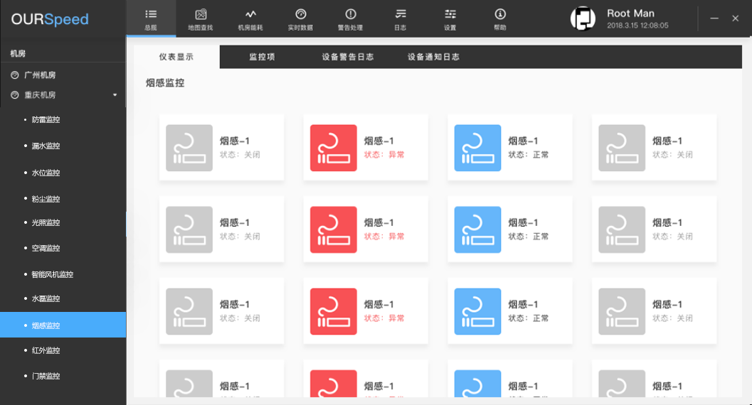 煙感:通過在機房的天花板上布置煙霧感應器,煙感輸出信號通過4芯電源線連接到SPD-6500GSM系列環境監控主機開關量接口,當機房出現煙霧時,系統會立即報警,通知機房管理人員。