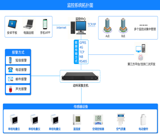 在集中管理平臺登錄主機IP,即可實現(xiàn)對采集設備的實時監(jiān)控,在后臺對溫濕度進行上下閾值的設置,可以聯(lián)動控制空調(diào)、風機等開啟和關閉,也可單獨對空調(diào)、風機、燈光等設備進行相關操作,實時監(jiān)測實時檢測記錄對應氣體的濃度值,如一氧化碳濃度值、空氣含氧量、空氣質(zhì)量等,一旦濃度超標,立即聯(lián)動風機降低氣體濃度,同時通過聲光、電話、公眾號、app、短信等方式進行報警。