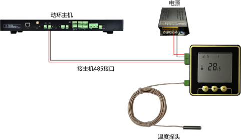 1.溫度傳感器上有DC12VRS485①、開關(guān)量輸入、溫度傳感器,有4接口。