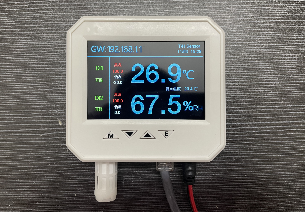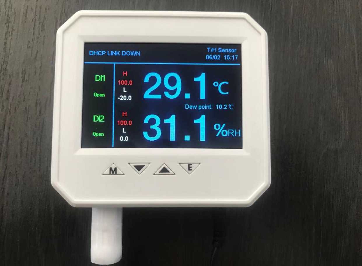 1、設備功能:SPD-HT485_TCP 采用 3.4 寸彩色液晶顯示屏 ,支持 webserver ,測量值可以在顯示屏、 web頁面或網絡讀取到,設備支持以下網絡通訊協議:Modbus TCP 協議 、 SNMPv1/v2 協議、 UDP 協議、MQTT 協議。